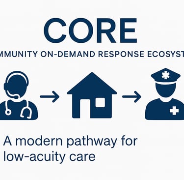 CORE is an on-demand care model designed to intercept non-emergent demand before it overwhelms your ED—while maintaining clinical oversight, documentation, and revenue capture.